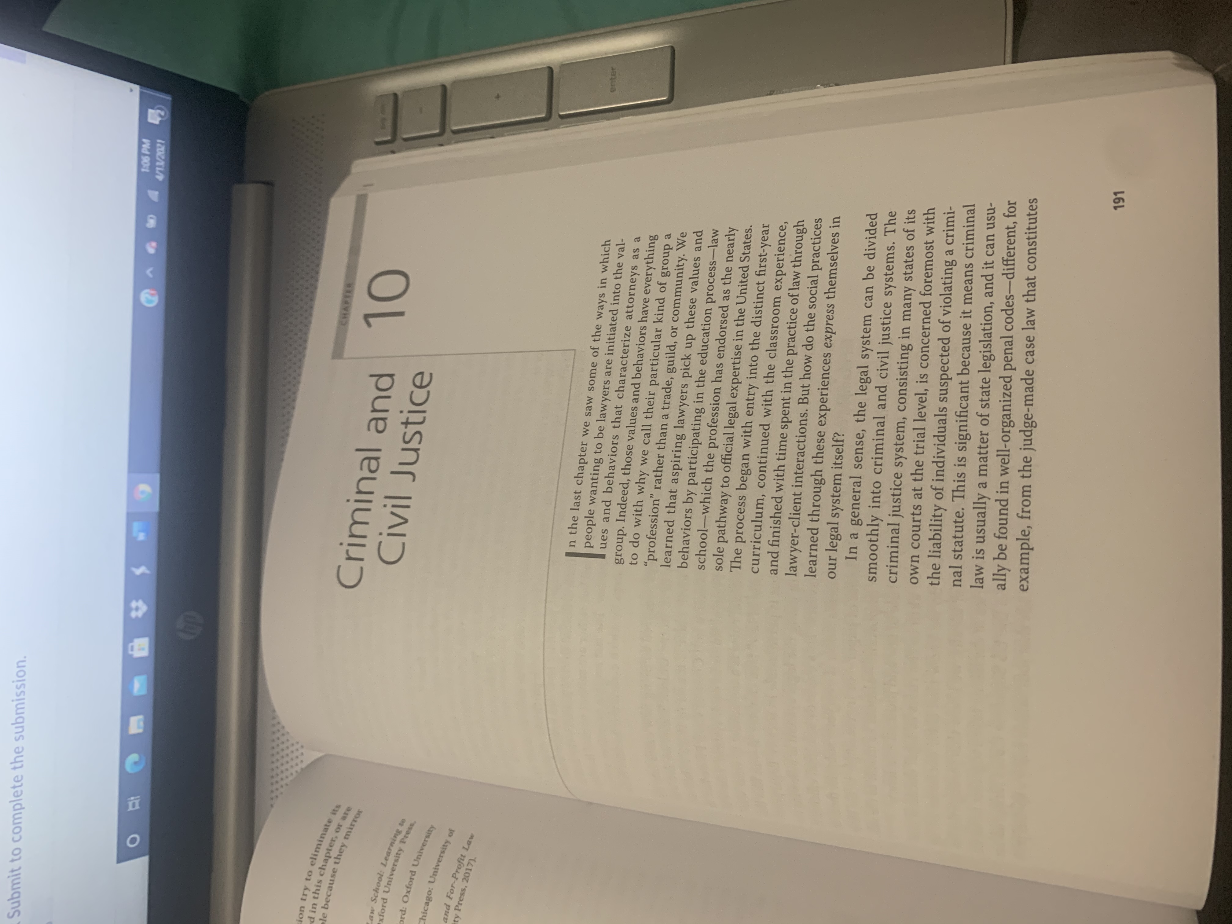 • You still didn't do it right. The files i uploaded come from chapters 10,11, and 12 of the text book "Law and Society Today" written by Riaz Tejani. You still have other references listed that I do not need. There only needs to be one reference and it should come from the textbook "Law and Society Today" only cite quotes from this book and you can do that through the chapters I listed they should be in order if you need to go back and look over them. Please if you have any questions or need more clarification don't hesitate to message me.