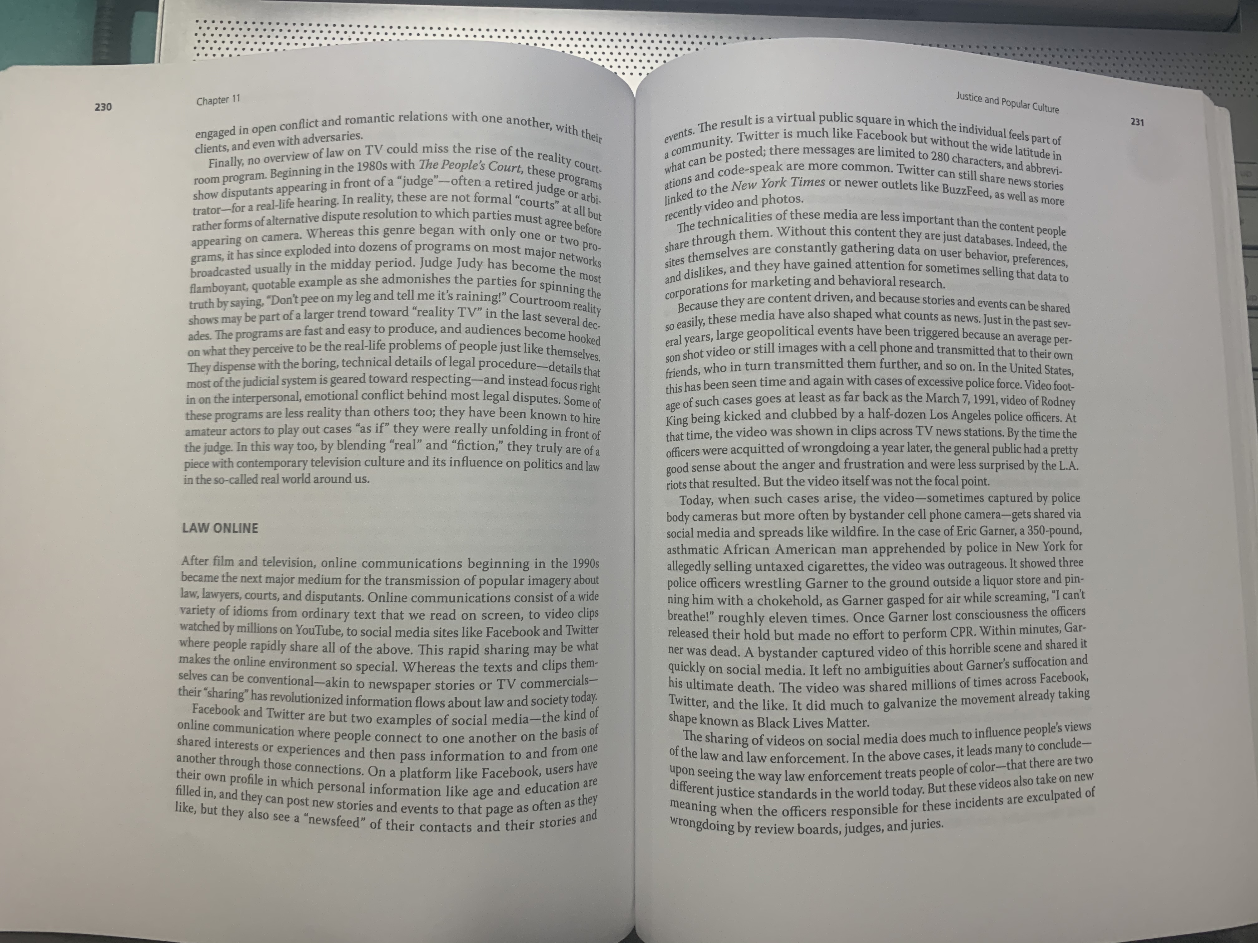 Assignment #5 - Please read Chapters 10-12, and answer the following questions: What is the most significant takeaway from the assigned chapters? (Provide details on the topic as well as reasons it was chosen as significant); and Are popular portrayals of law and lawyers good or bad for justice in society? Why?