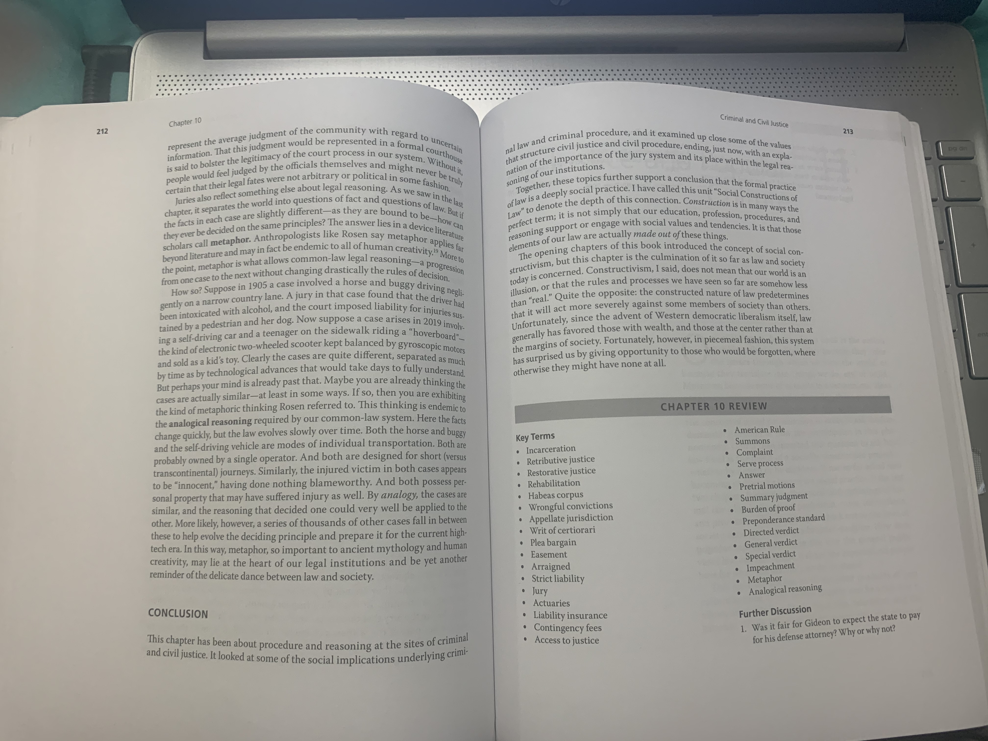 Assignment #5 - Please read Chapters 10-12, and answer the following questions: What is the most significant takeaway from the assigned chapters? (Provide details on the topic as well as reasons it was chosen as significant); and Are popular portrayals of law and lawyers good or bad for justice in society? Why?