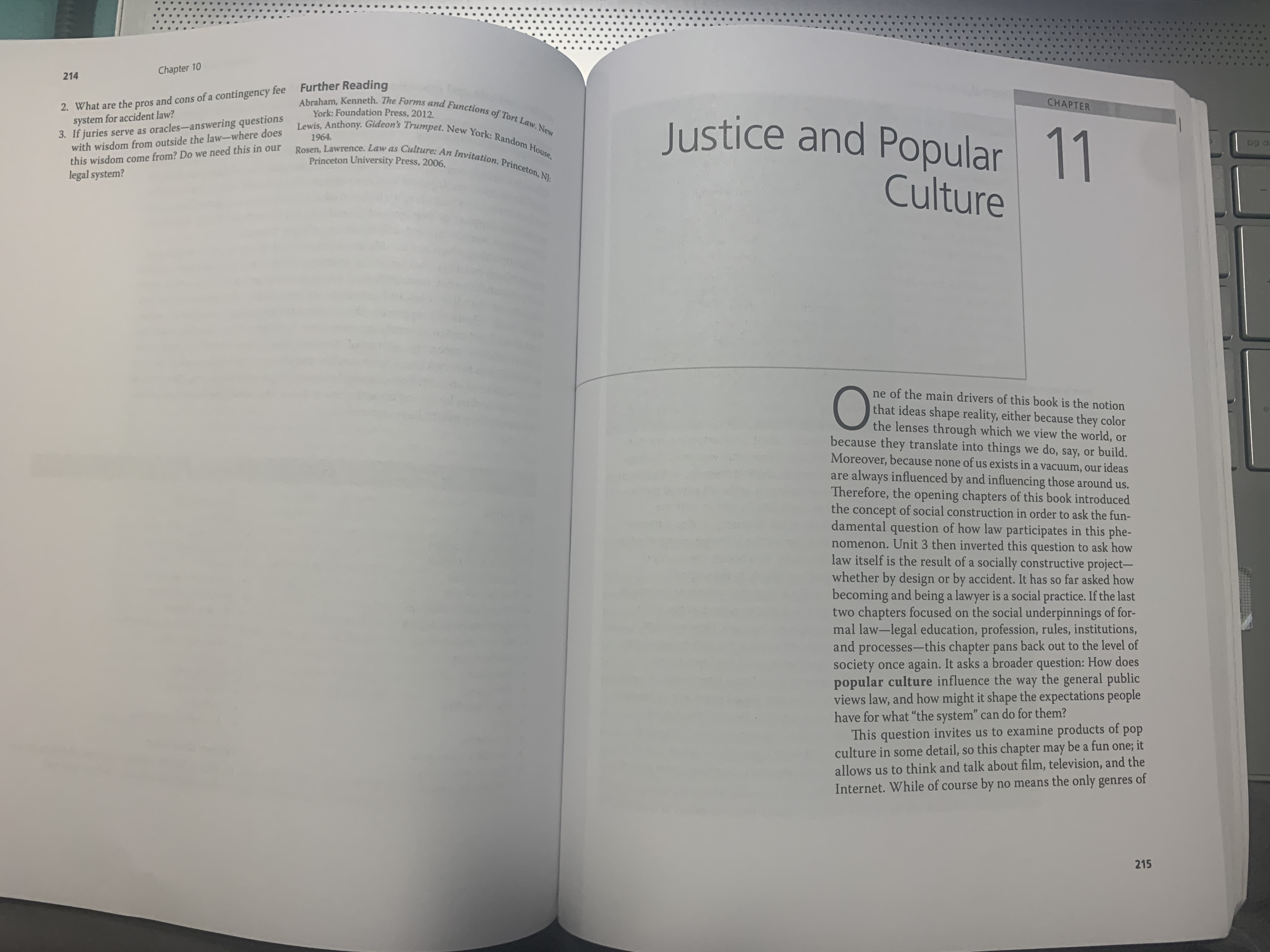 Assignment #5 - Please read Chapters 10-12, and answer the following questions: What is the most significant takeaway from the assigned chapters? (Provide details on the topic as well as reasons it was chosen as significant); and Are popular portrayals of law and lawyers good or bad for justice in society? Why?