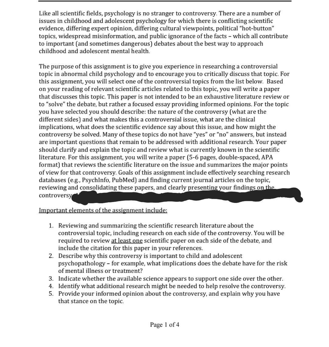 Select a topic from the list provided and discuss how topic is controversial supported through research. More detailed explanation of assignment on attached documents.