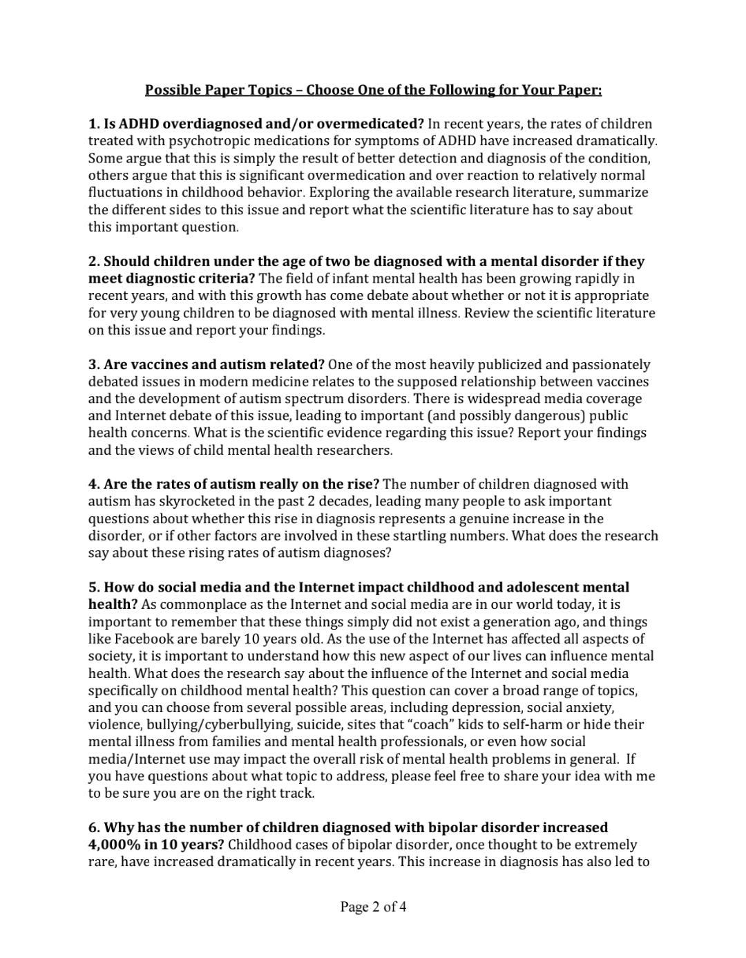 HomePsychology Help › Select a topic from the list provided and discuss how top...