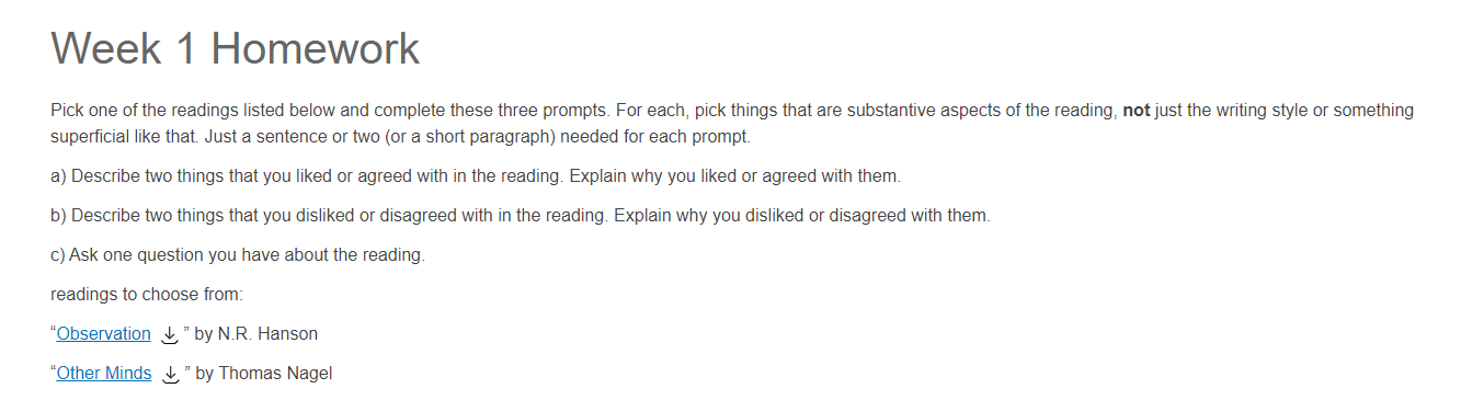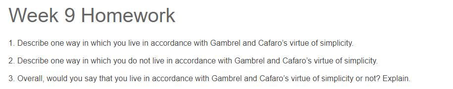 • Hey Homework 9 is about Virtue of Simplicity which you have made a 3-4 long essay about, I assume you still have the reading unless you still need it I'll upload it again.