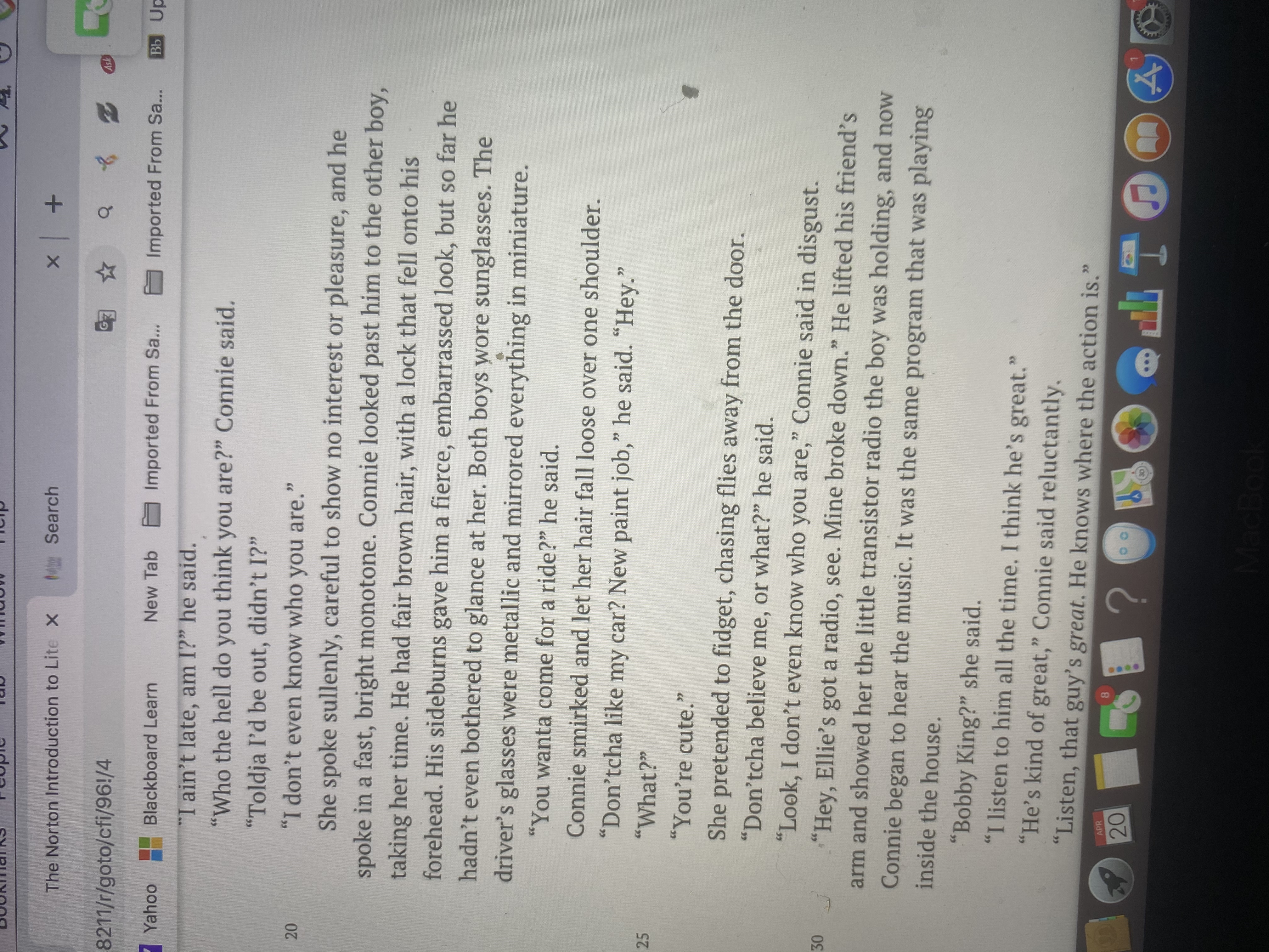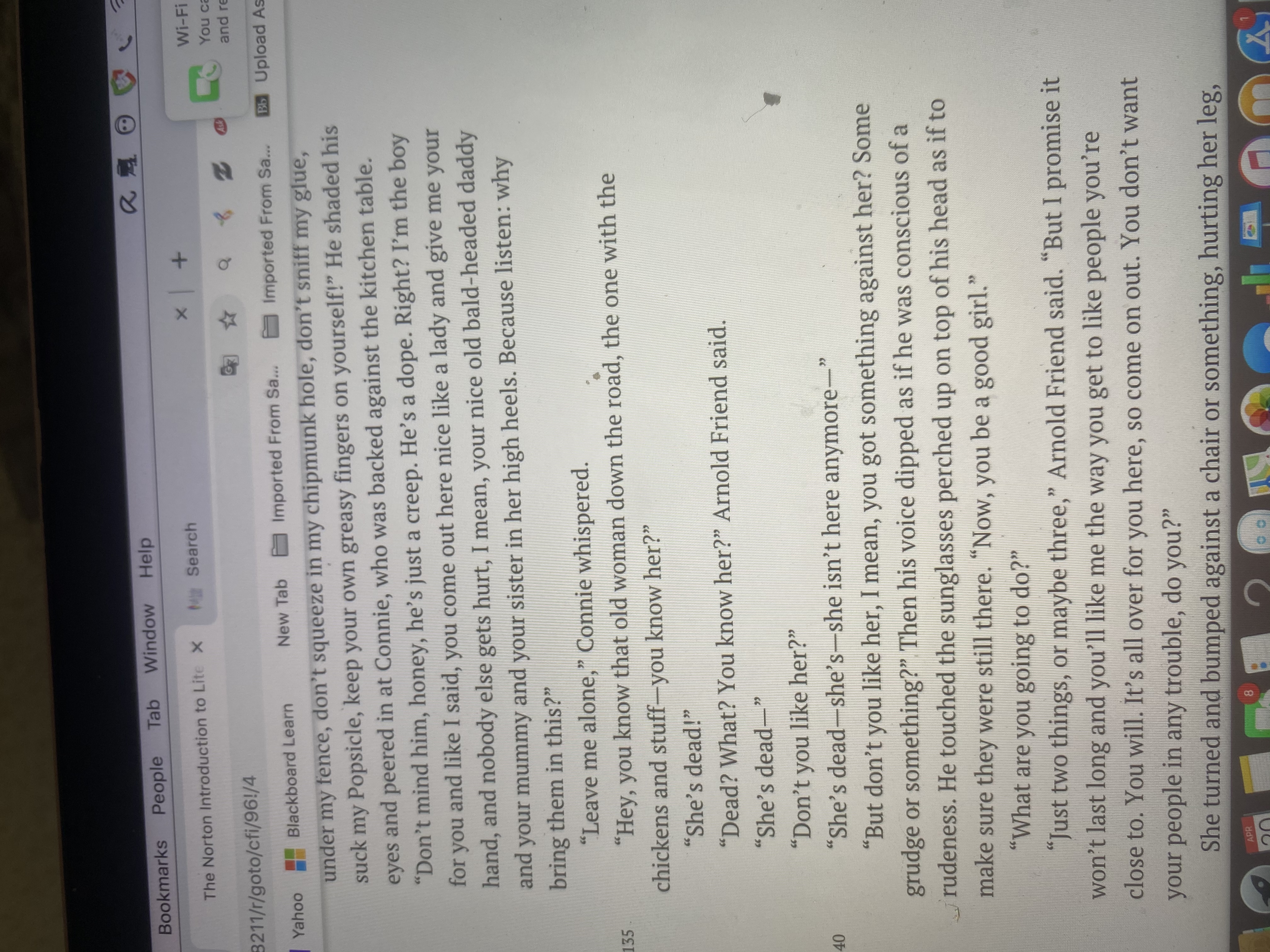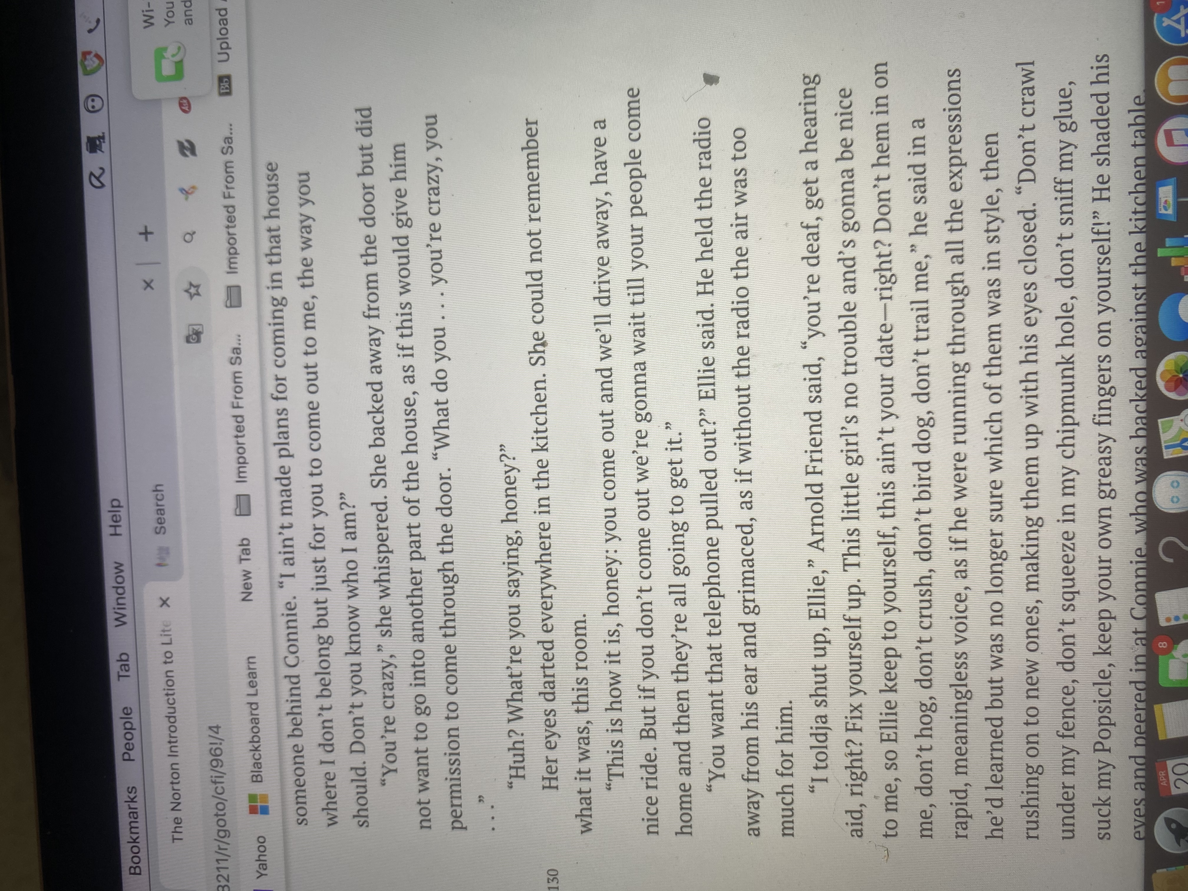 • Hello friend i had already began on the other one so now i have to do file 57 and you need it today. Is it possible to give some more hrs. please? I had read the two stories for the assignment and it was tedious. Will you allow me to have it done in a couple of hrs?