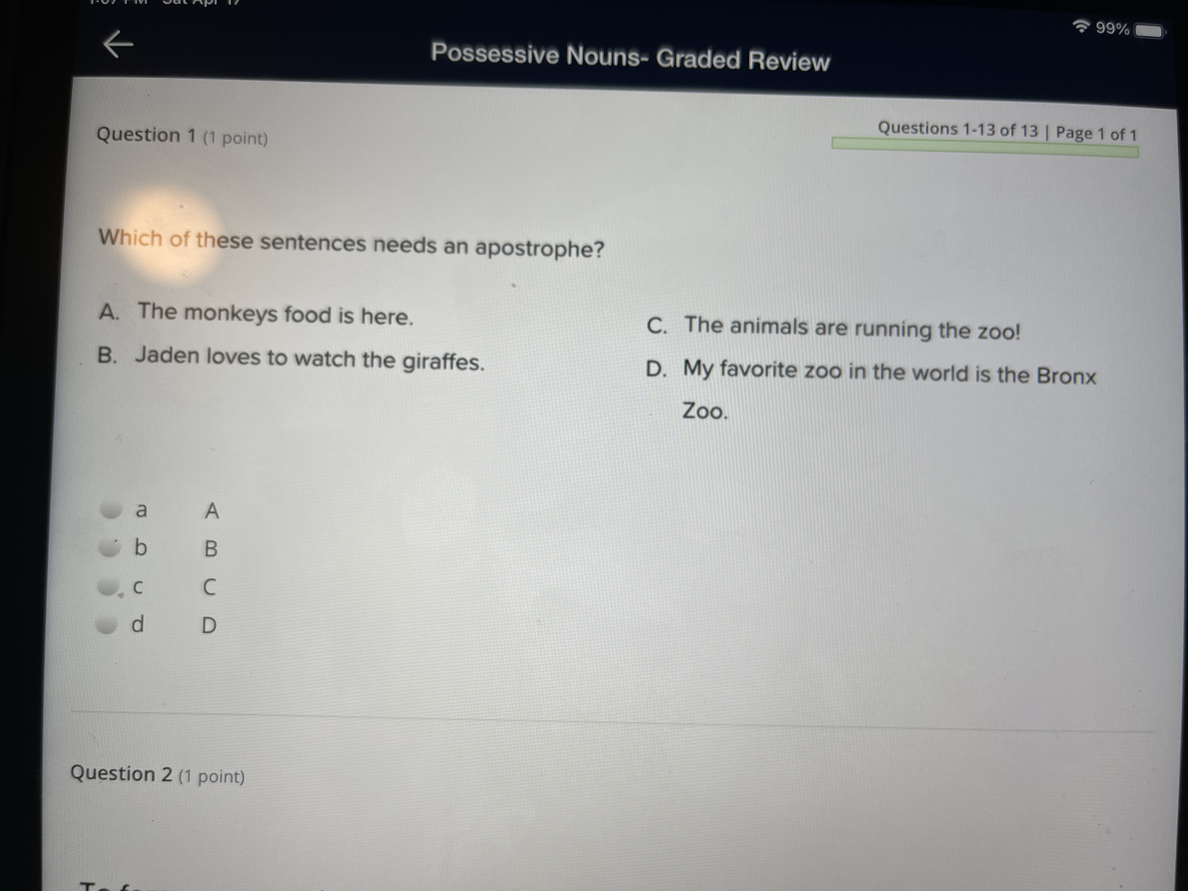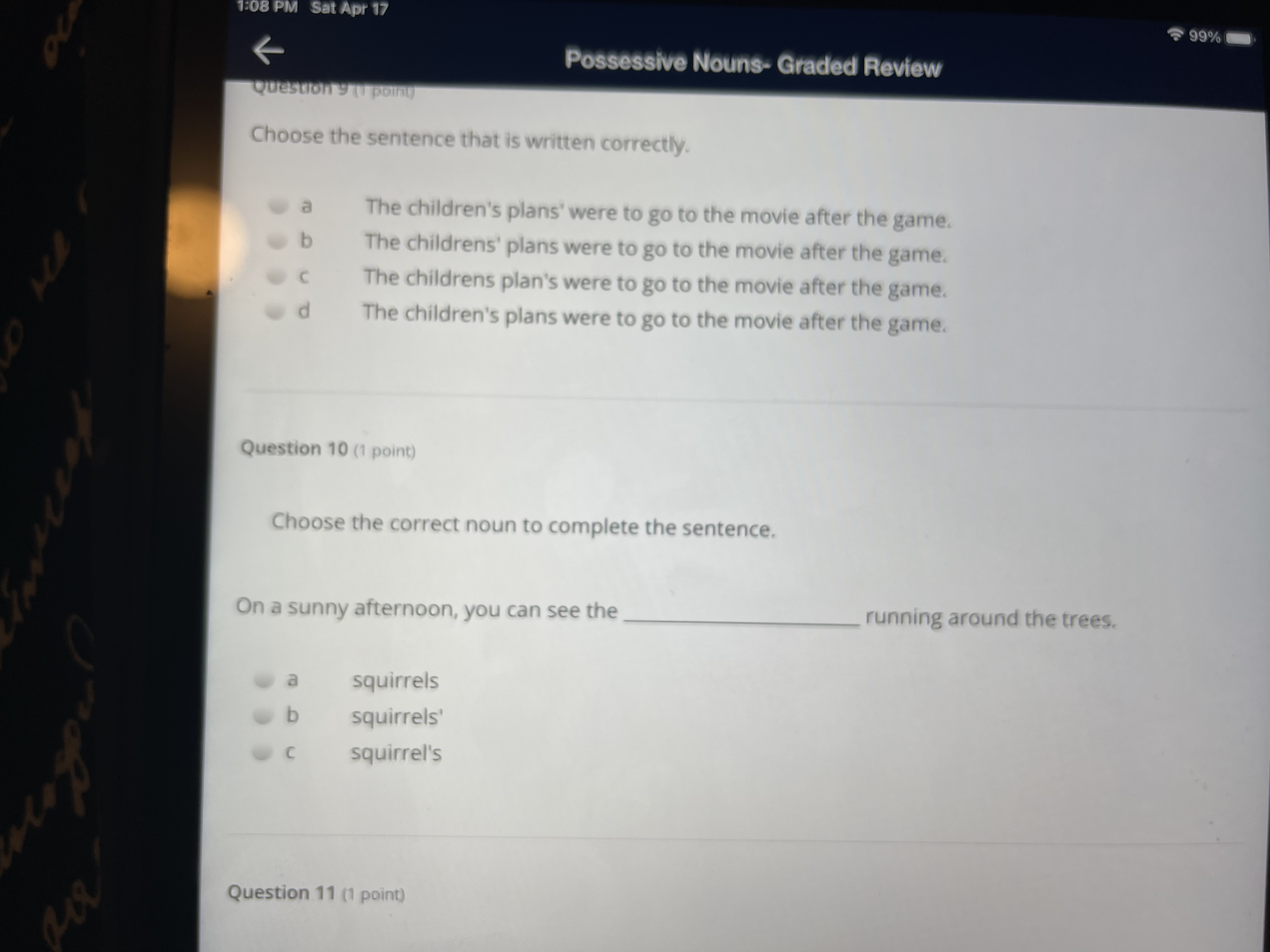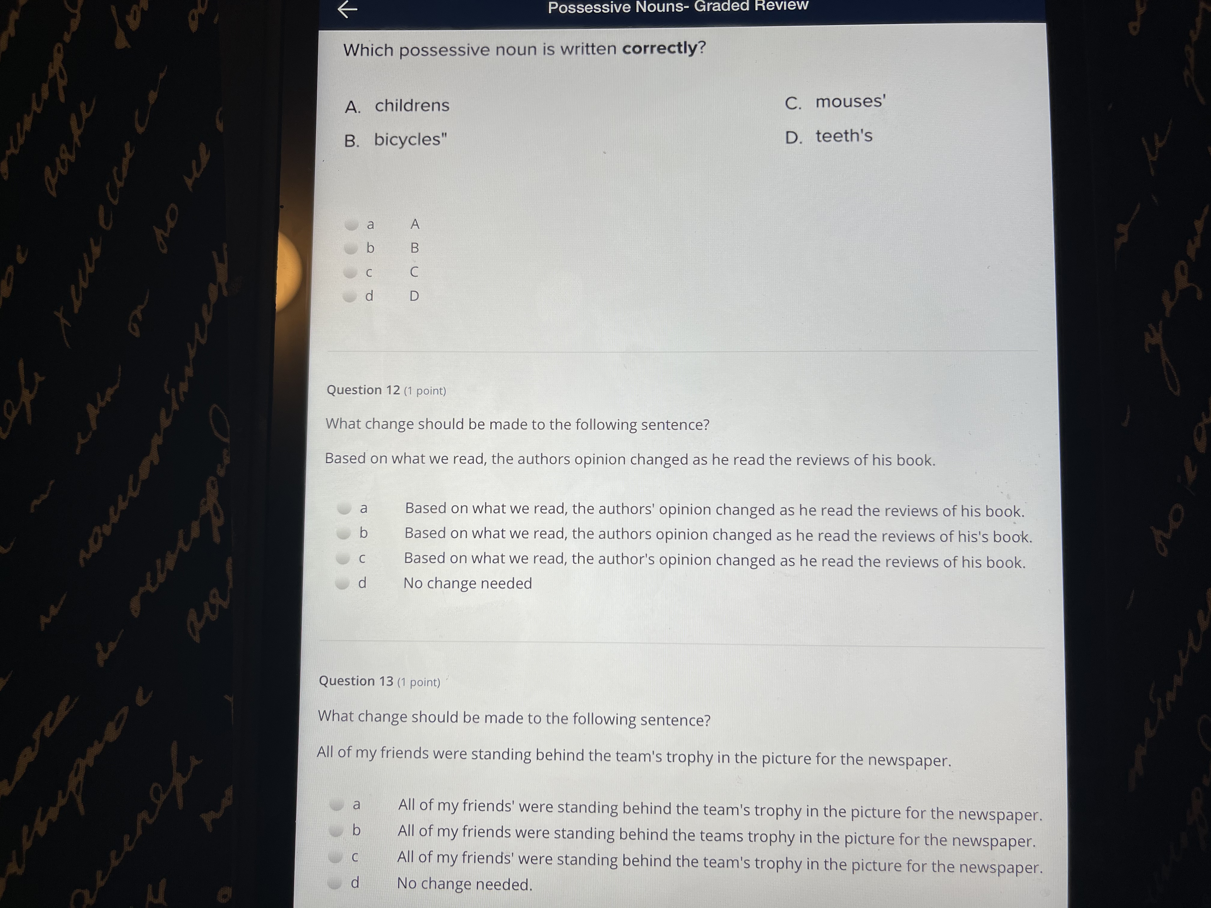 5 th grade english posessive nouns worksheet 13 multiple choice questions
