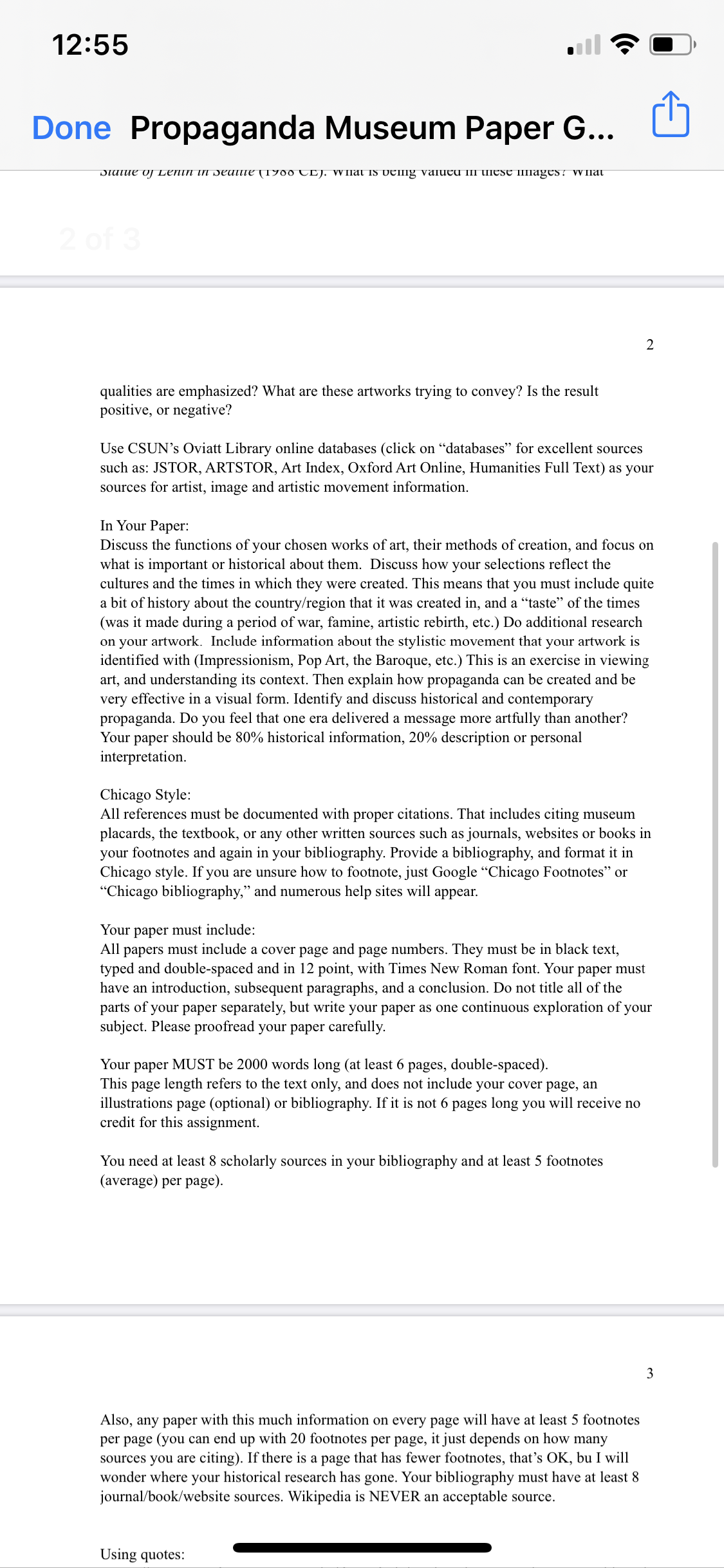 • it's 6 pages long or 2000 words Chicago style 8 scholarly sources. at least5 footnotes per page.