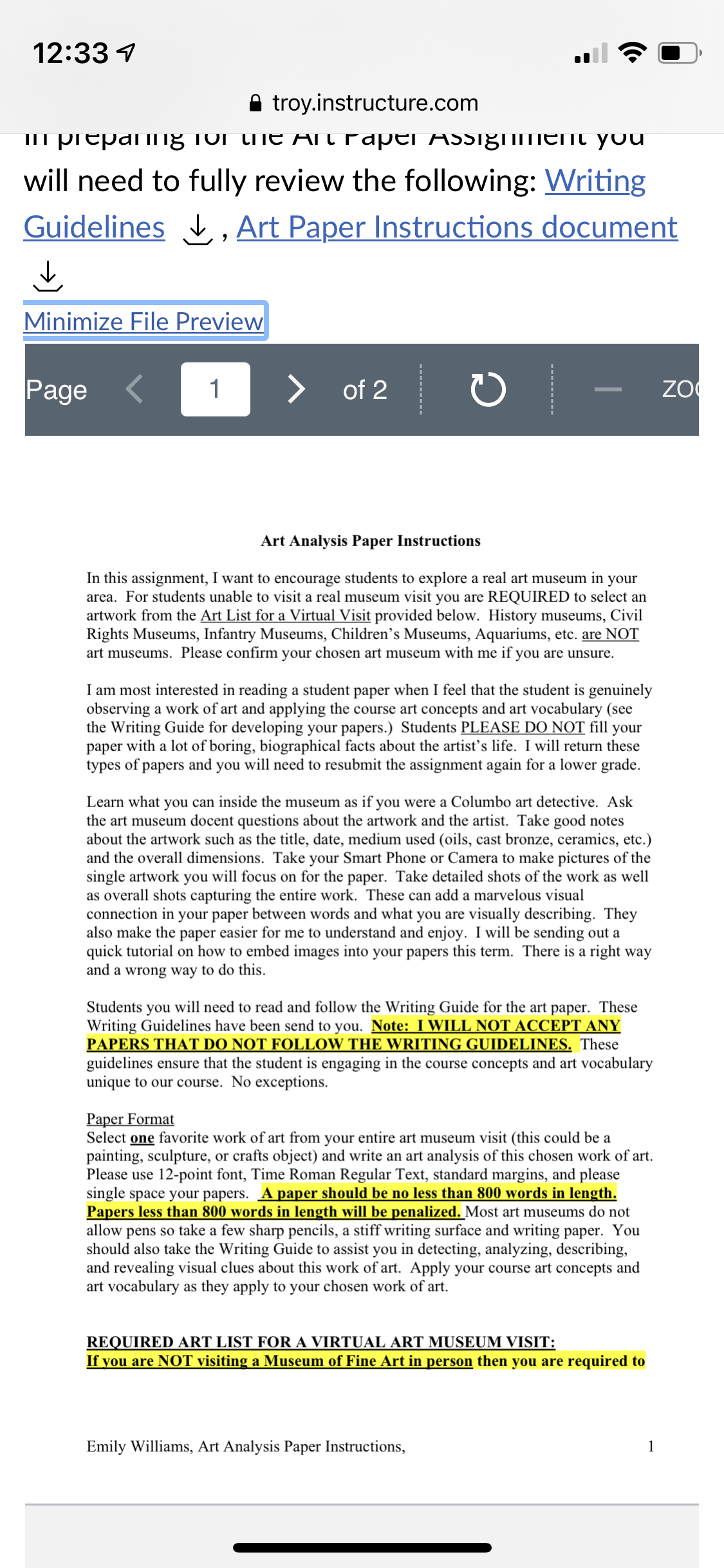 Screenshots below. Write about any artwork that in a museum.