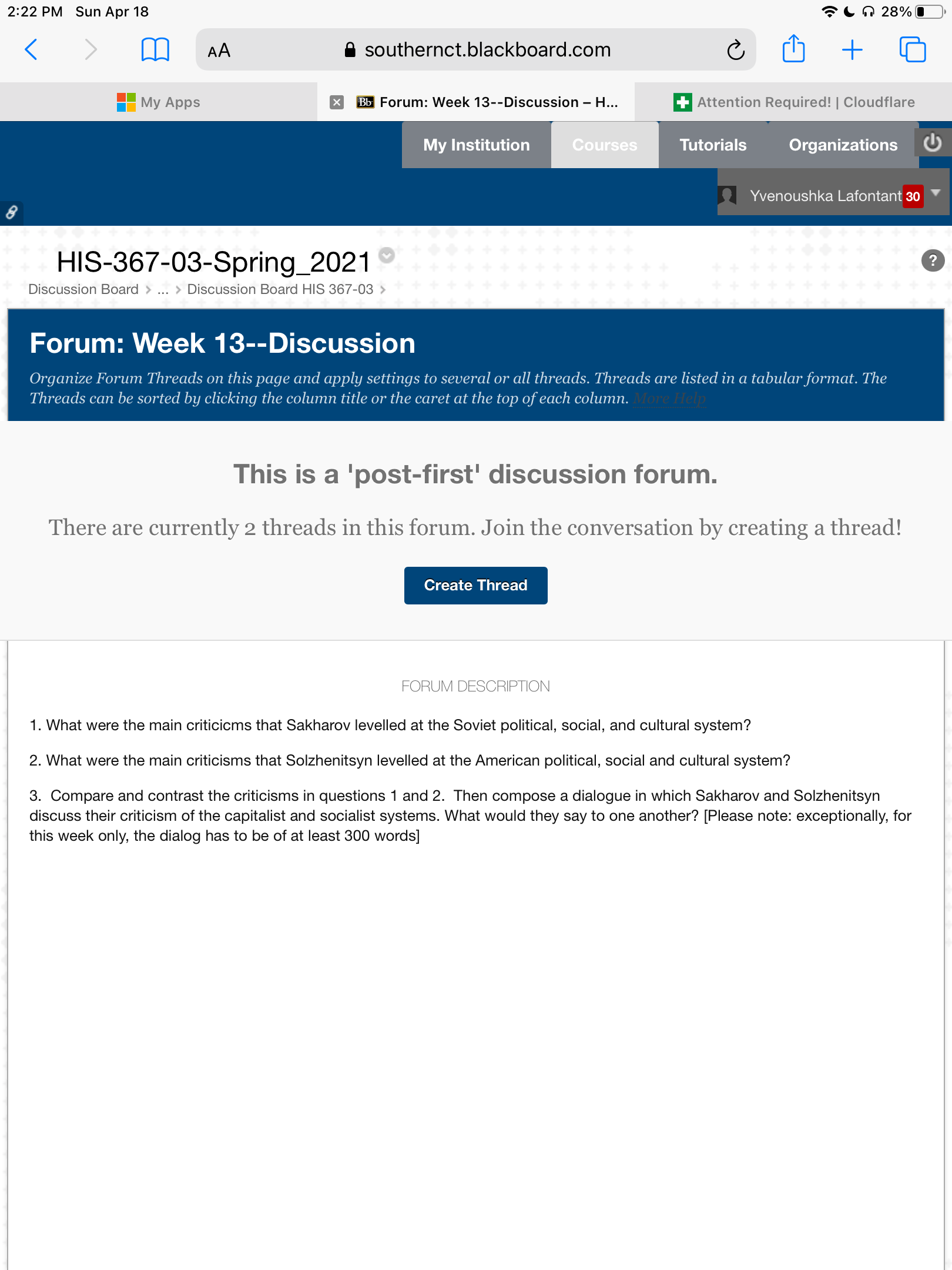 1. What were the main criticicms that Sakharov levelled at the Soviet political, social, and cultural system? 2. What were the main criticisms that Solzhenitsyn levelled at the American political, social and cultural system? 3. Compare and contrast the criticisms in questions 1 and 2. Then compose a dialogue in which Sakharov and Solzhenitsyn discuss their criticism of the capitalist and socialist systems. What would they say to one another? [Please note: exceptionally, for this week only, the dialog has to be of at least 300 words]