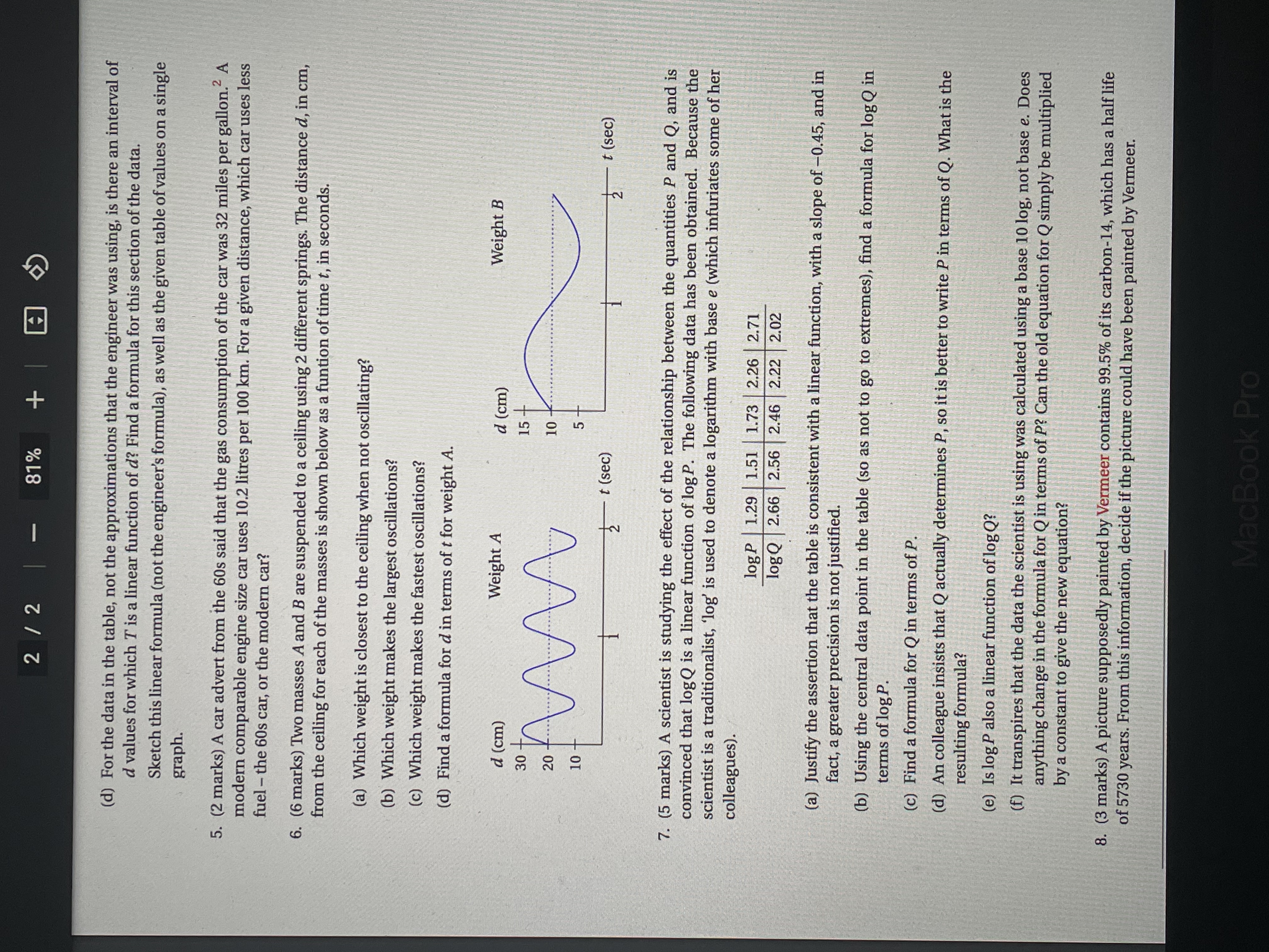 • No additional information just need all working out to these questions