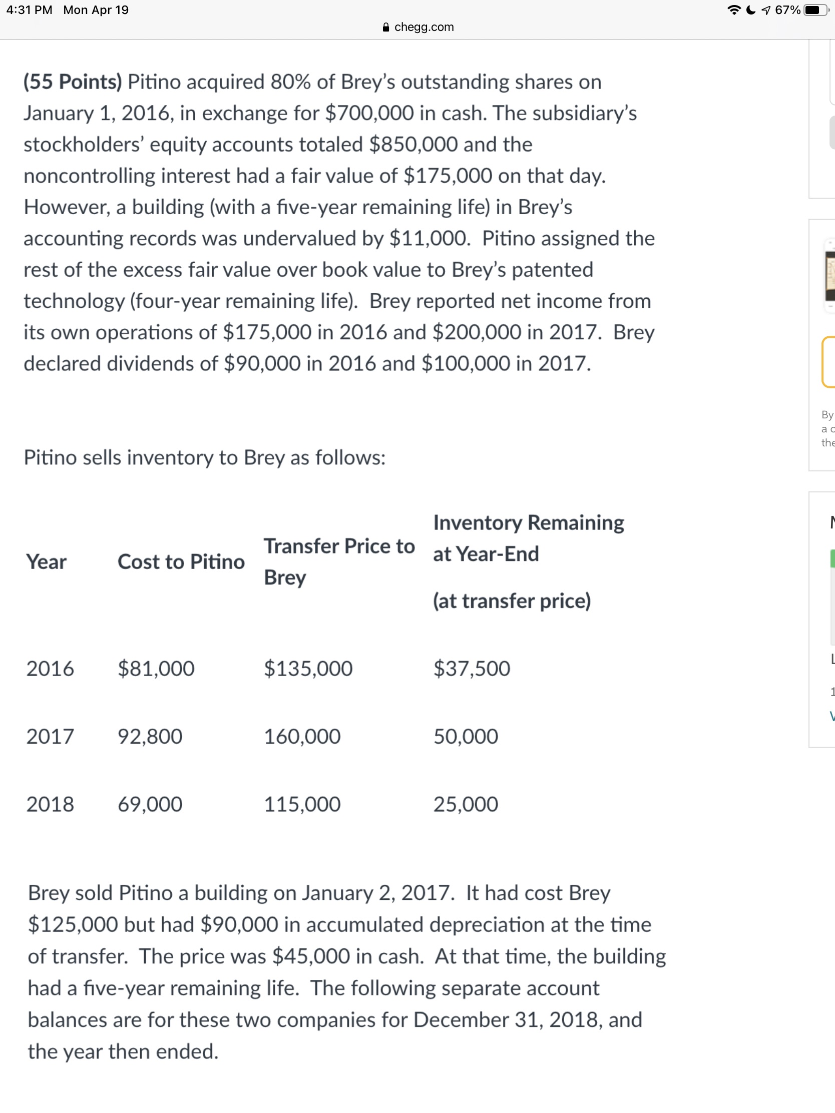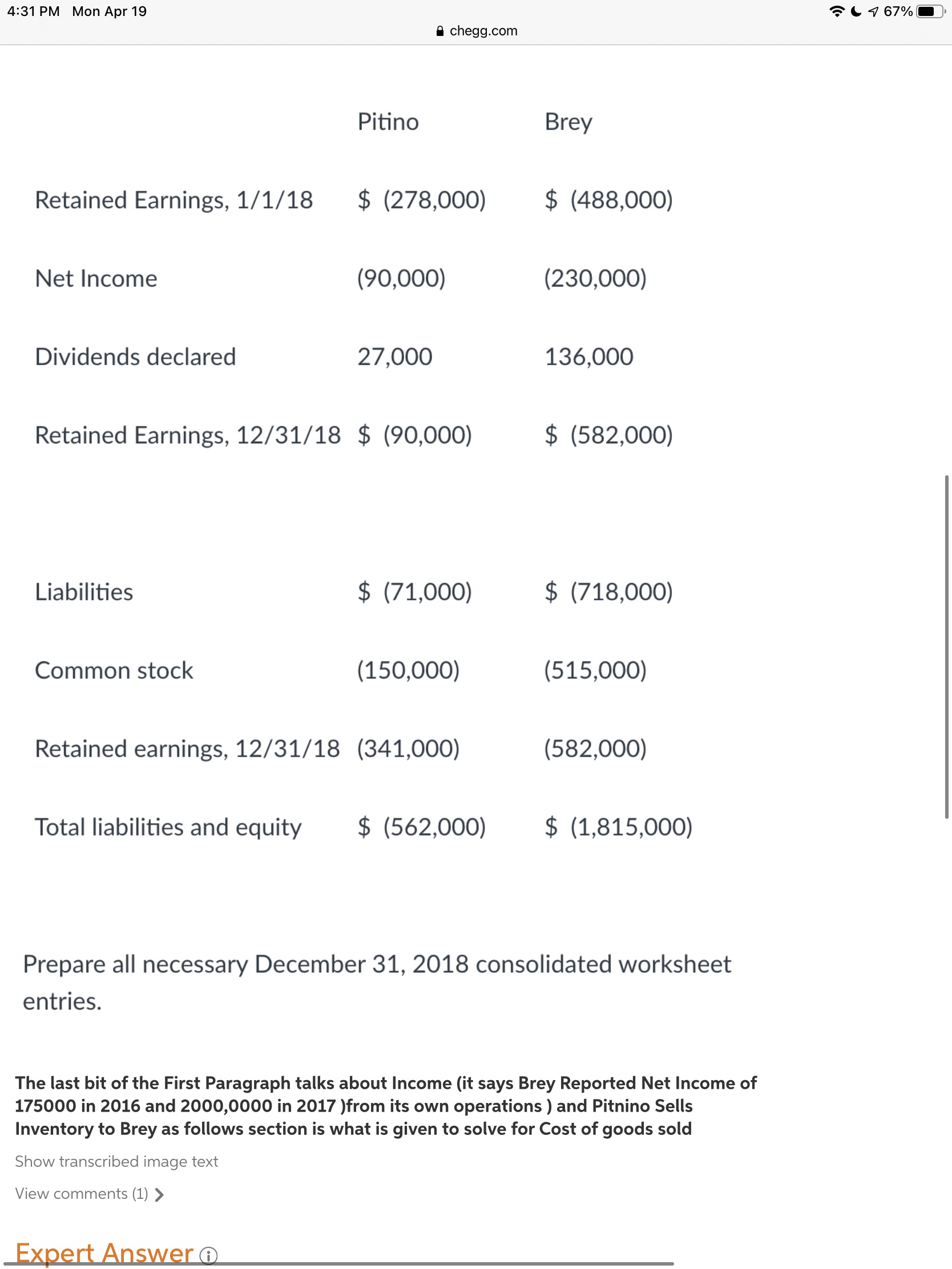 • Thank you i received the work and i will be working on it. However, i have a question. I should only prepare all the necessary December 31, 2018 consolidated worksheet entries, right?