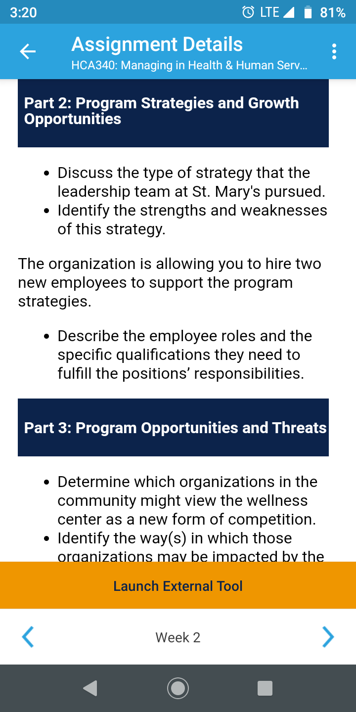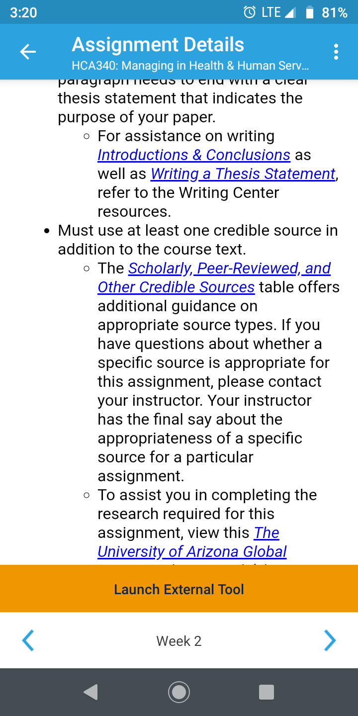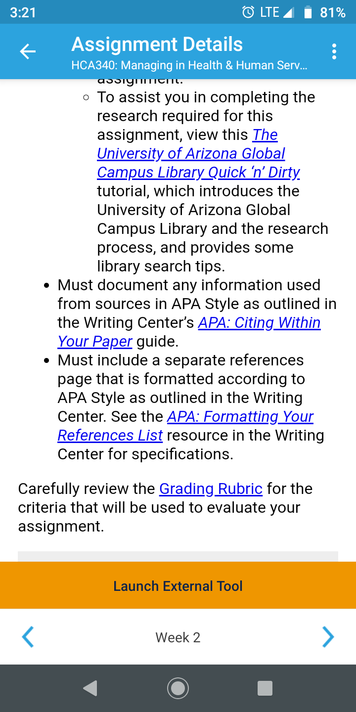 • Go to Module...Week 2 Assignment...click on launch external tool.. click on feedback.. it was some missing details. Again, i will complete the remaining quizzes as i am not comfortable with you taking them. I gave you a chance but the first low score doesnt seem like your trying much. I can do the quizzes myself. Focus on the discussions and assignments. Thank you!