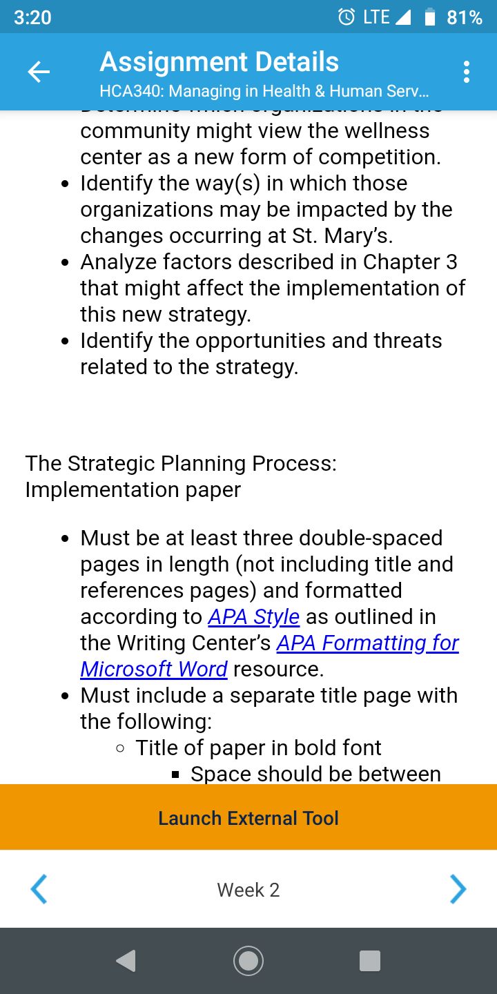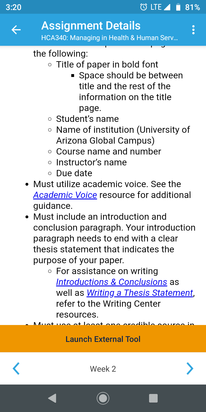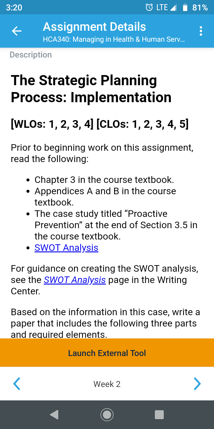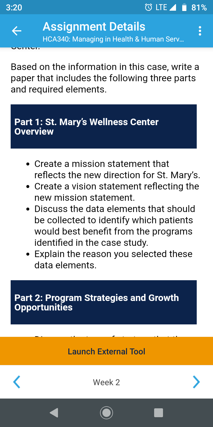 • Go to Module...Week 2 Assignment...click on launch external tool.. click on feedback.. it was some missing details. Again, i will complete the remaining quizzes as i am not comfortable with you taking them. I gave you a chance but the first low score doesnt seem like your trying much. I can do the quizzes myself. Focus on the discussions and assignments. Thank you!