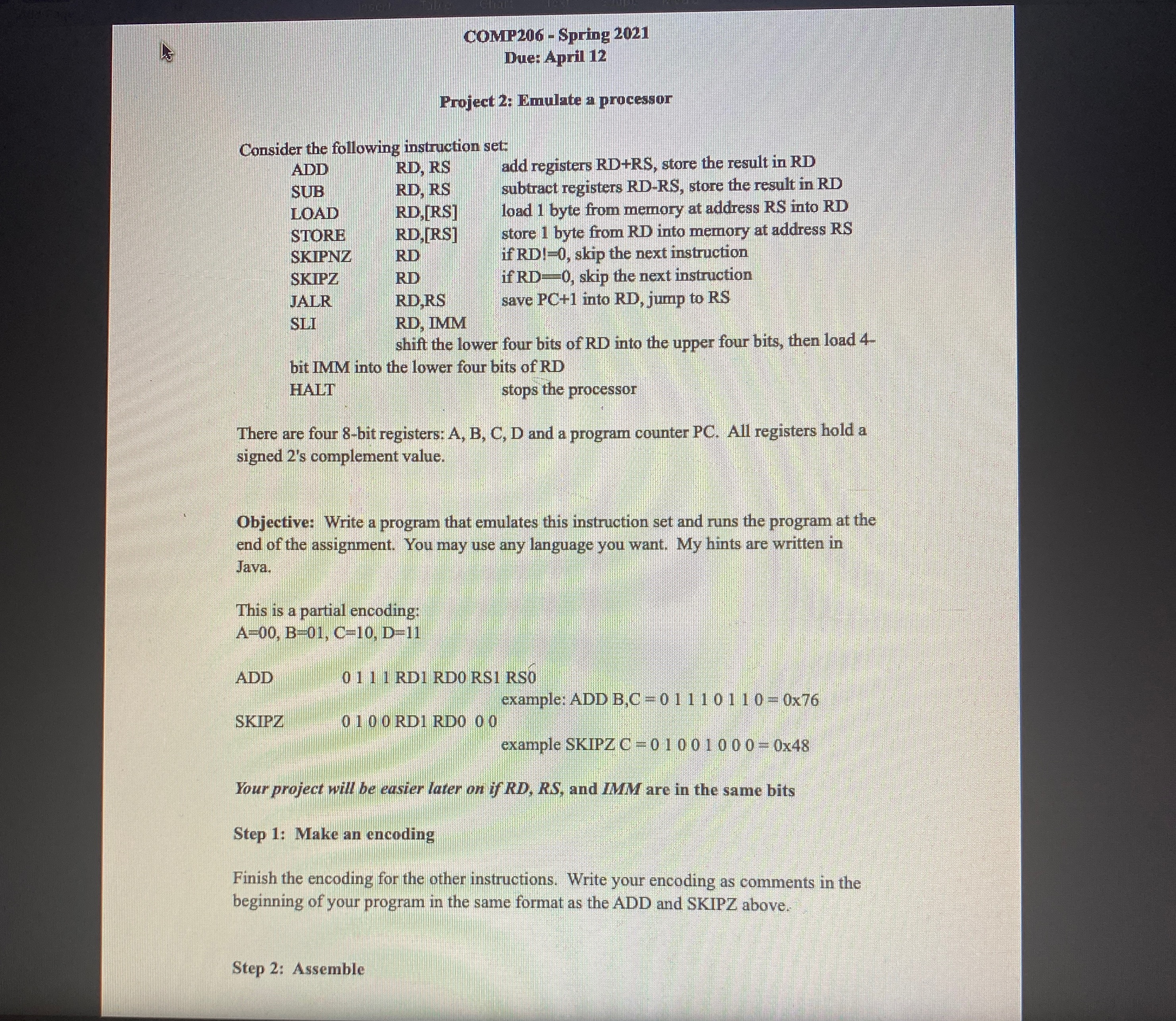 HomeComputer Science Help › Emulate a processor