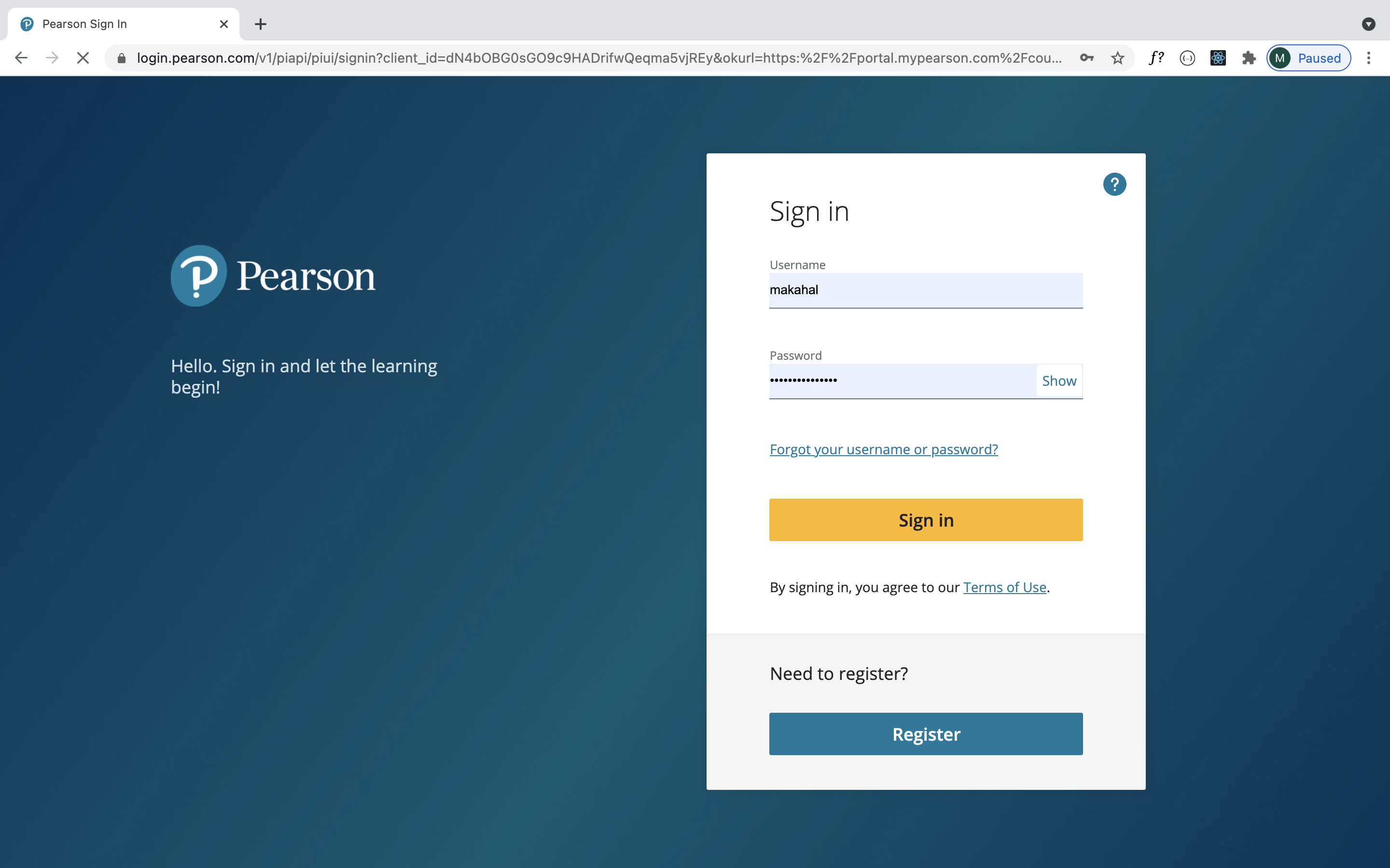 • what conformation code ? you go to https://mlm.pearson.com/northamerica/ sign in with the user makahal and pass that I attached that's it. doesn't need anything else