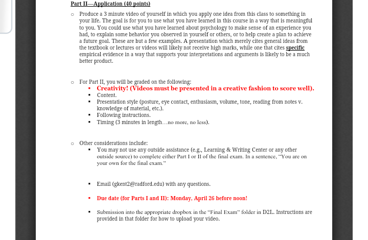 • Okay, and I'm I free to use any psychology topic or idea or there is a specific one for the course?