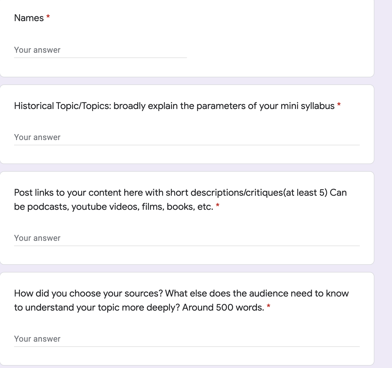 • So like "broadly explain the parameters of your mini syllabus" what am I supposed to write hear