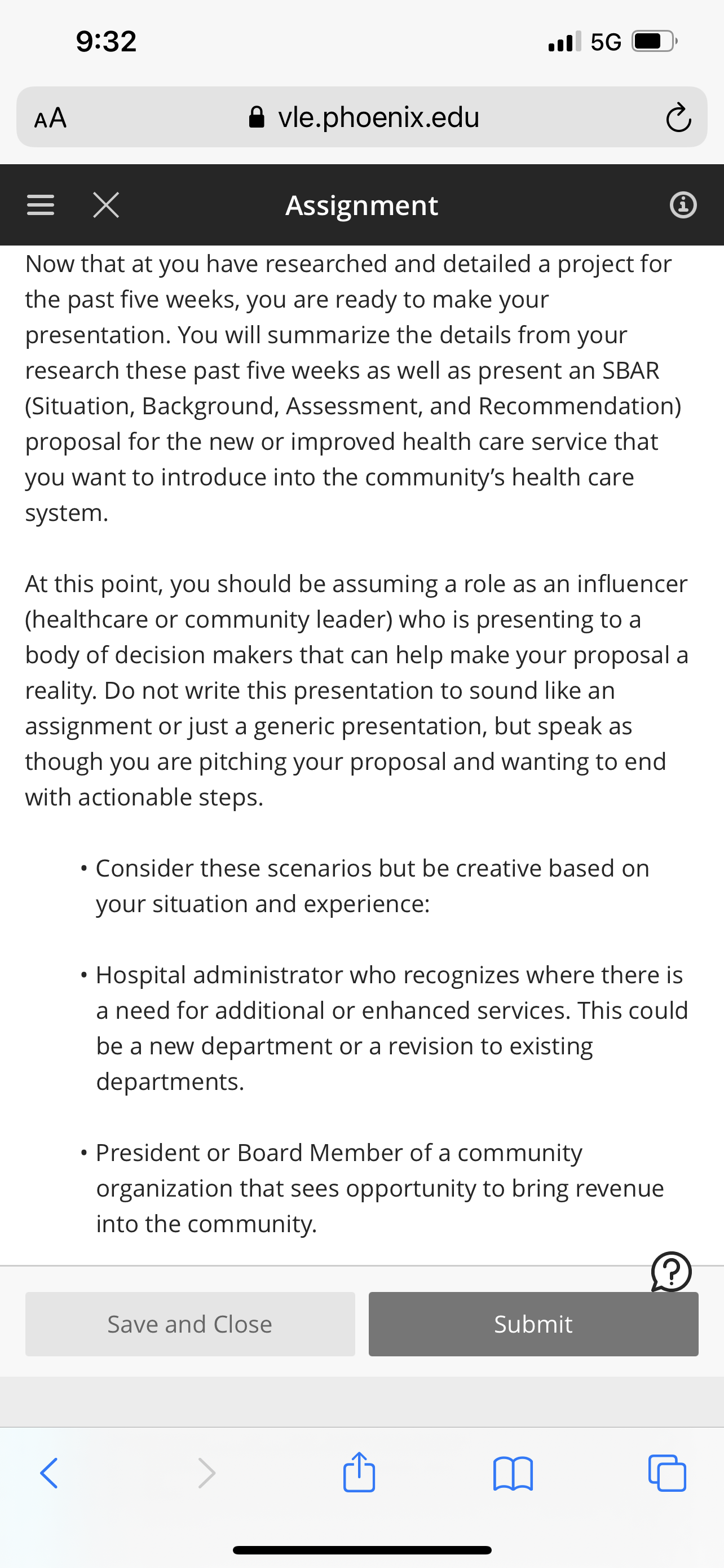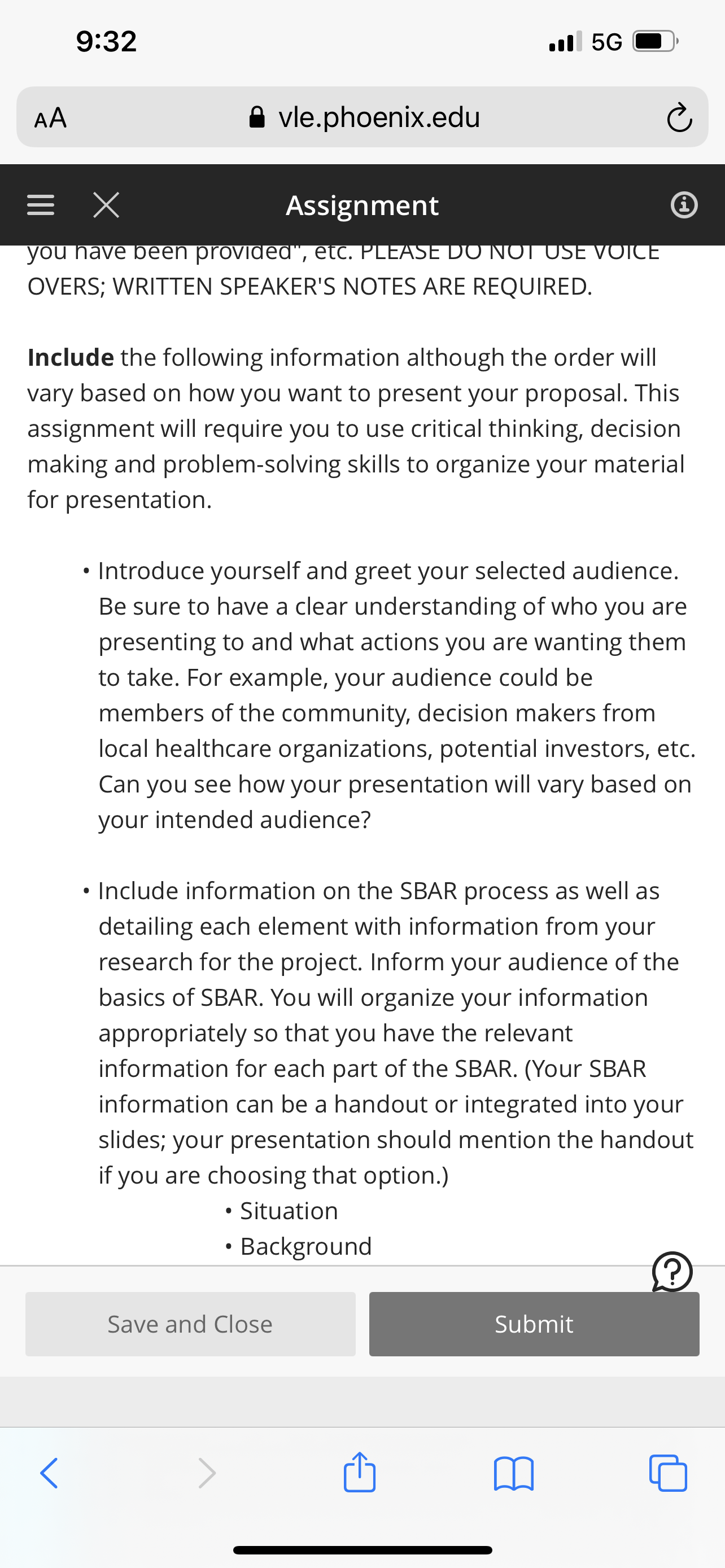 • Also, be sure to think about how you will wrap up the presentation and be sure you have a clear call to action so your audience knows what you would like them to do to move the project forward. Merna, don’t forget the final presentation is to include an SBAR (Situation, Background, Assessment, Recommendation) document. I look forward to your final presentation and SBAR.