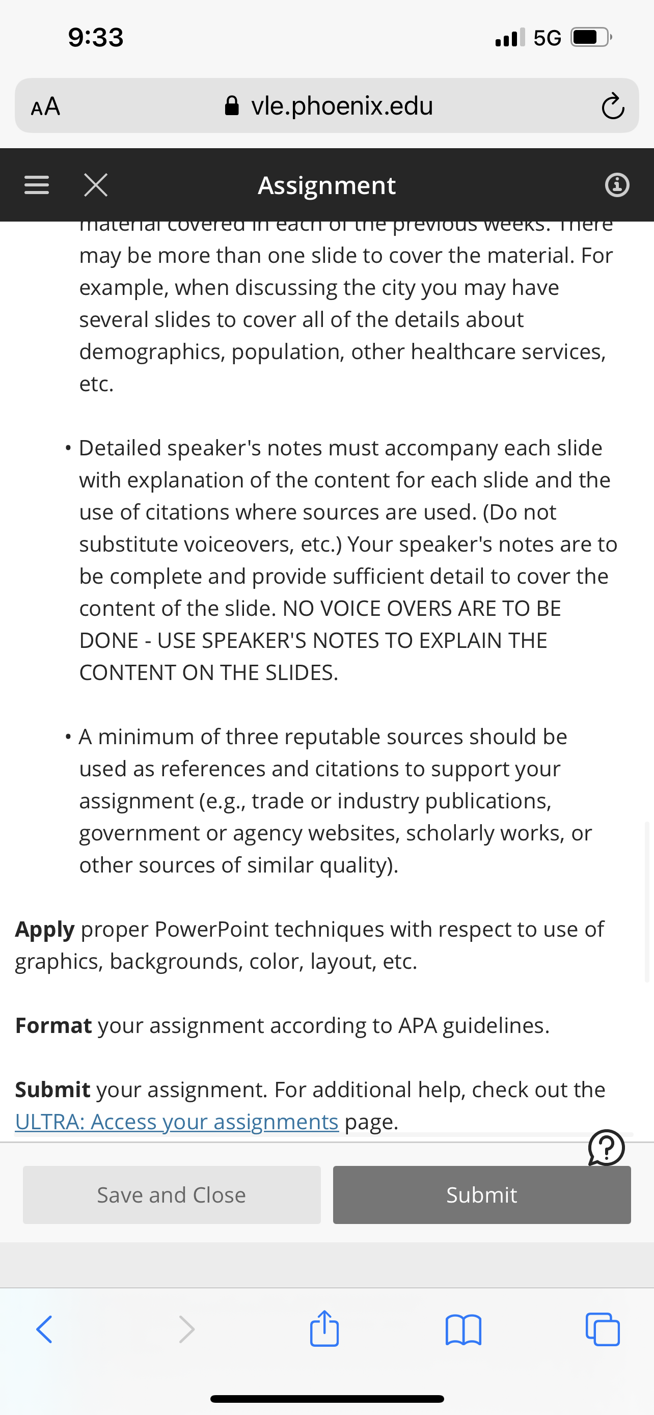 • You may want to review the APA sample paper at Online Writing Lab (OWL) at Purdue to see how your paper is to be formatted. University Requirements for Masters Level -https://multimedia.phoenix.edu/cms/20209217/#masters1 UOPX Sample APA Paper - https://wp-edtech.s3.us-west-2.amazonaws.com/wp-content/uploads/sites/3/2021/03/29113304/03.2021.APA_.UOPX_.SamplePaper.UndergradandMasters-1.pdf Online Writing Lab at Purdue APA Sample Paper – https://owl.purdue.edu/owl/research_and_citation/apa_style/apa_formatting_and_style_guide/apa_sample_paper.html Of course, there are many other resources at the UOPX Center for Writing Excellence and the OWL at Purdue that will help you with all of your APA questions.