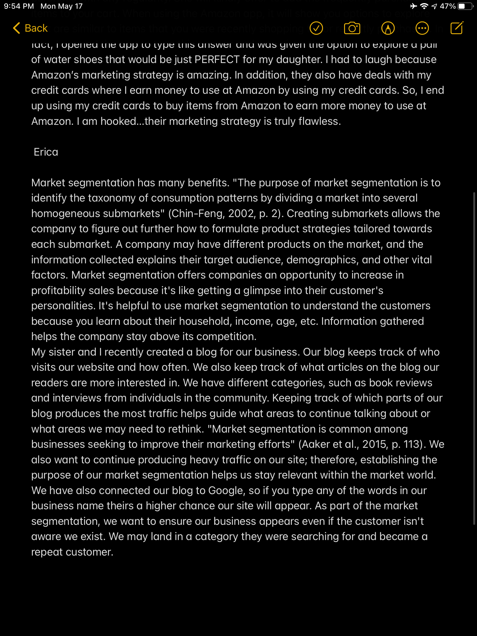 • Hey, nice to meet you. Here is A quality-driven writer with special technical skills and vast experience in SEGMENTATION IN BUSINESS. A PLAGIARISM-FREE PAPER AND IMPECCABLE QUALITY CONTENT IS WHAT I DELIVER. My goal is to MEET EVERY INSTRUCTION AND ENSURE THAT ALL YOUR EXPECTATIONS ARE MET WITH NO EXCEPTIONS. Timely delivery is guaranteed. Kindly allow me to do this paper for you. Thanks.