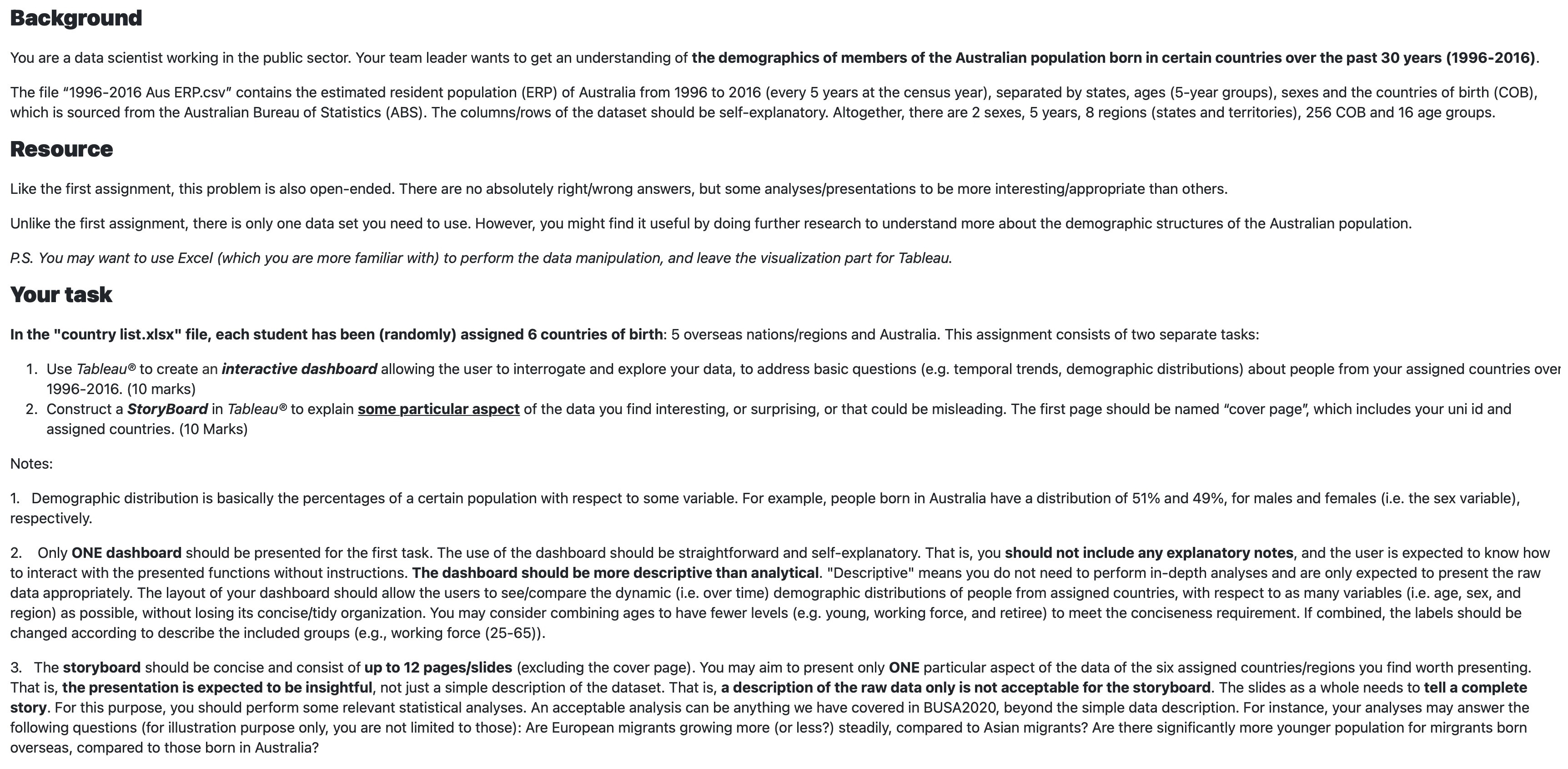 Hi, I am having a data analytics homework using Tableau. Down below I have attached two pics with detailed instructions and a csv file which contains raw data and to be opened in Excel. Thanks.