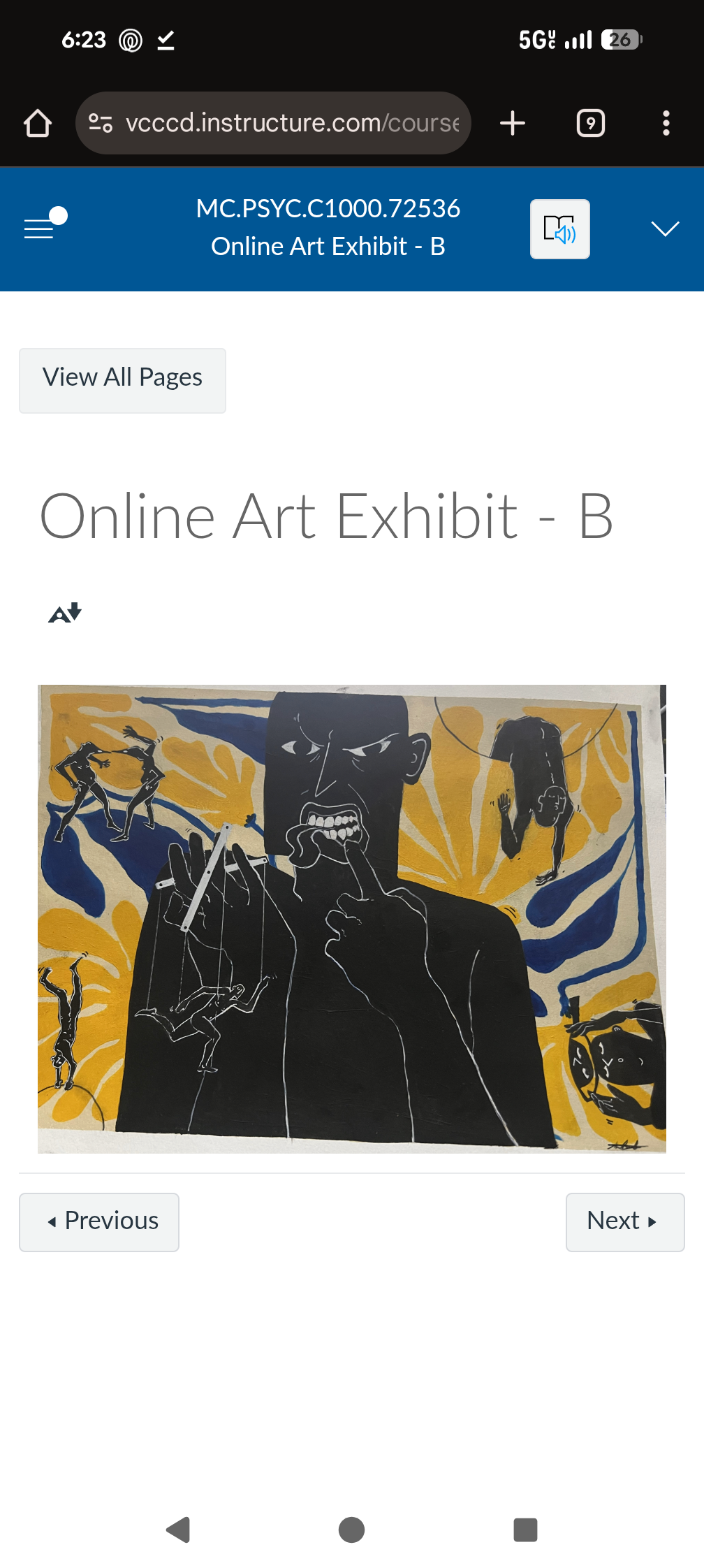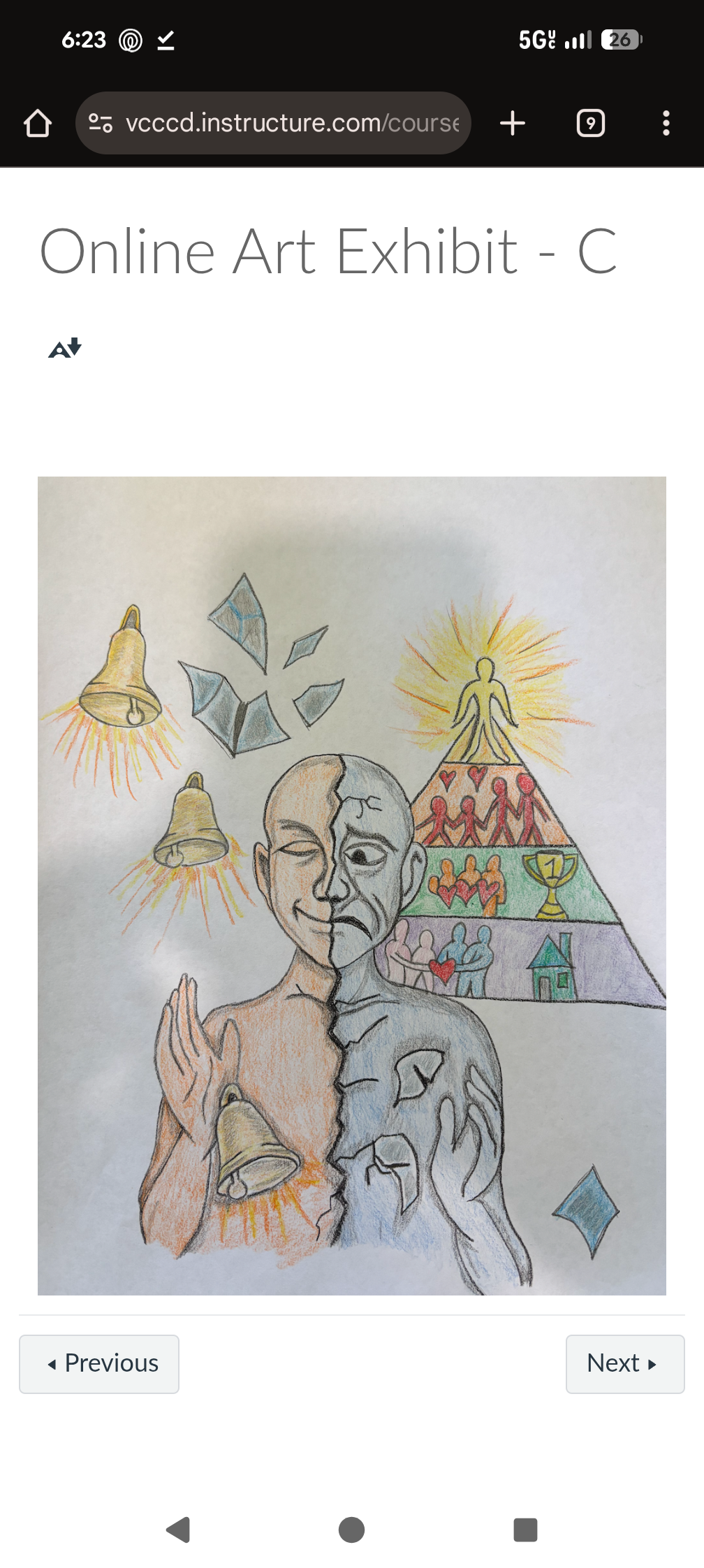 Instructionchoose three psychological concepts or theories that resonate with the themes, emotions, or symbols that you believe are present in the artwork. Important: You may only use our textbook and content that we cover in our class for this assignment - no other sources (and please be mindful that we do not cover every textbook chapter in out class). You will write one paragraph for each concept or theory. In each of the three paragraphs, you will begin by introducing the psychological concept or theory and explaining how you believe it is integrated into and/or contributes to your interpretation of the meaning of your selected art piece. For each concept chosen, provide a clear explanation of its relevance to the artwork. Discuss the significance of these psychological elements in enhancing your understanding or interpretation of the art piece. In addition, provide specific examples or evidence from the artwork itself to support your analysis, such as visual elements, narrative motifs, or stylistic choices made by the artist. Conclusion and Personal Reflection (1 paragraph): In this concluding paragraph of your paper, your goal is to reflect on your experience with this assignment. For example, explain any challenges you faced during the creative process. Please also discuss what you may have learned from this assignment. In particular, reflect on how the analysis of the artwork through the lens of psychology has deepened your understanding of both the artwork and the psychological concepts/theories discussed.