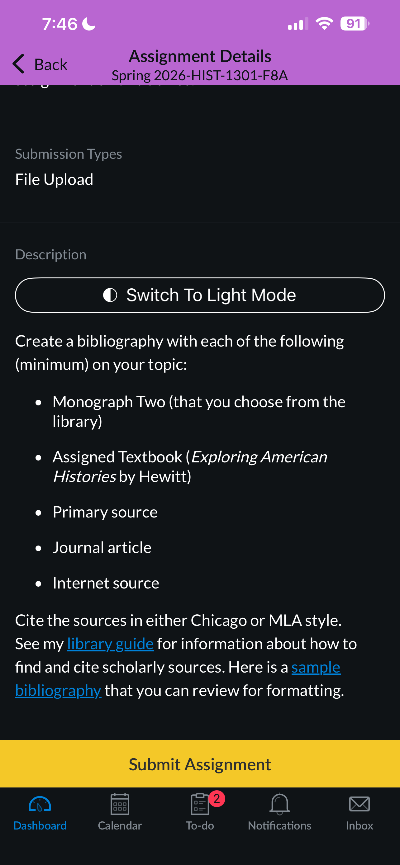 InstructionCreate a bibliography with each of the following (minimum) on your topic: Monograph Two (that you choose from the library) Assigned Textbook (Exploring American Histories by Hewitt) Primary source Journal article Internet source Cite the sources in either Chicago or MLA style. See my library guide for information about how to find and cite scholarly sources. Here is a sample bibliography that you can review for formatting.